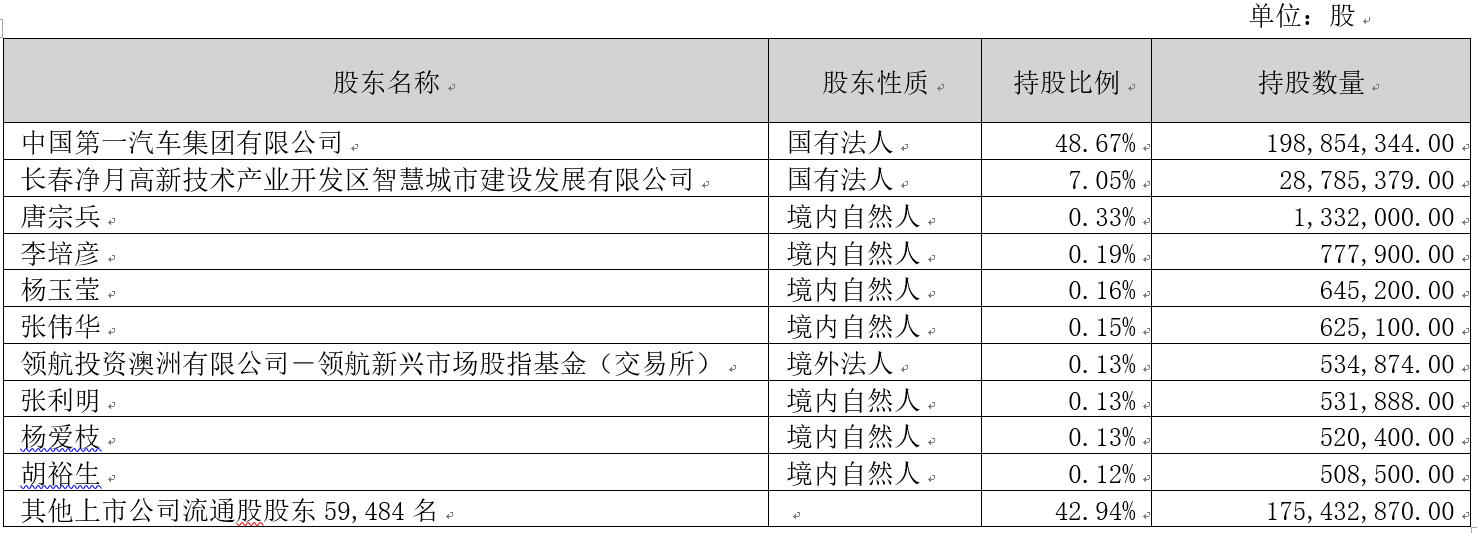 710公海寰宇信息技术股份有限公司(以下简称“公司”)2008年5月9日在深圳证券交易所挂牌上市,股票简称“710公海寰宇信息”,股票代码为:002232,目前为深交所主板上市公司。截至2022年9月30日,公司共有股东59,494名,公司控股股东及实际控制人为中国第一汽车集团有限公司,具体股权结构如下表:
